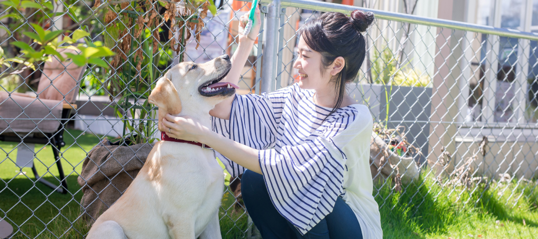 敷地内には、ドッグランが併設されており、ワンちゃんの為のお庭づくりも数多く承っております。